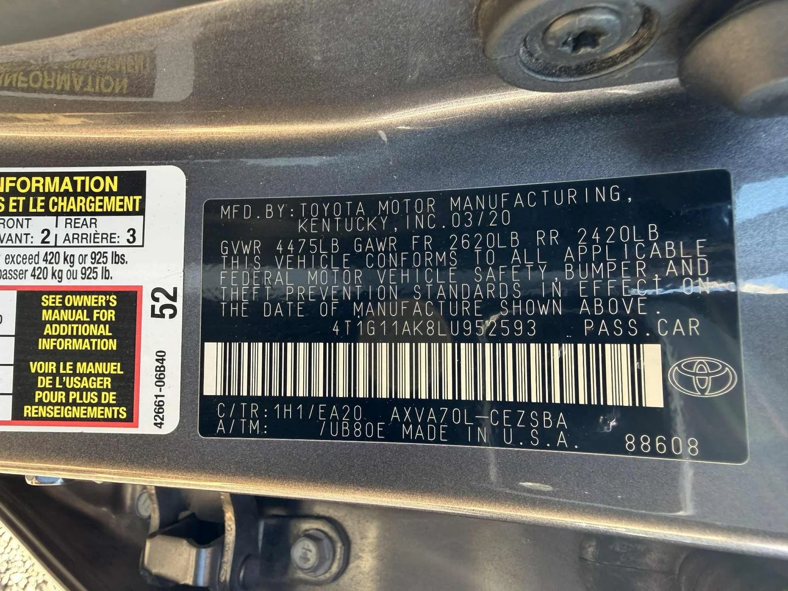 VIN: 4T1G11AK8LU952593